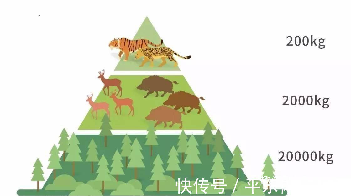 一头牛比一个人大得多,但是如果一个人一年到头就吃牛,两天头牛的量也喂不饱,咋一看似乎违背了能量守恒定律。我们举个不太恰当的例子:两万公斤草能养两千公斤牛羊,这些牛羊能养两百公斤狮子老虎。